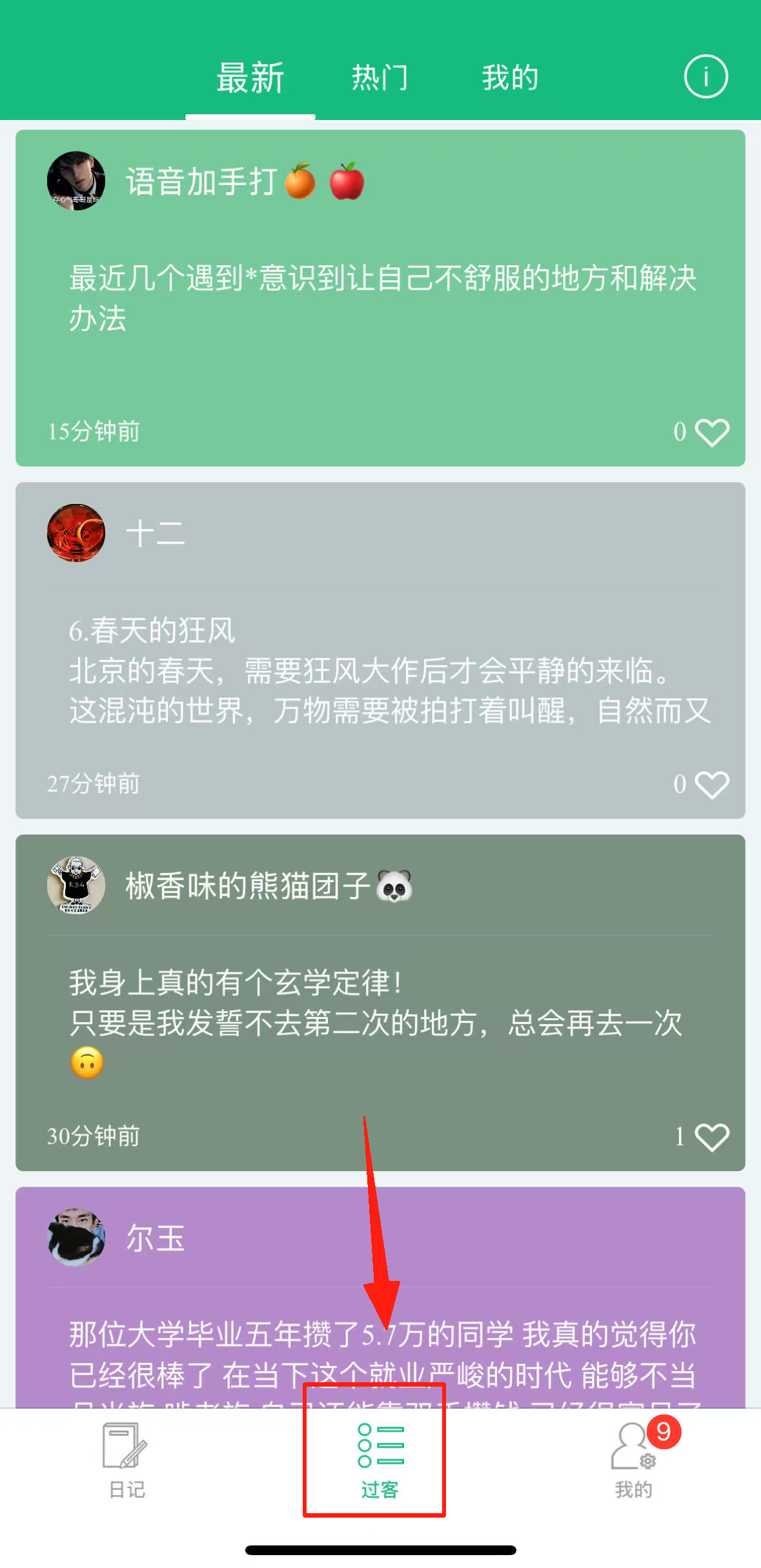 3、社交化分享平台:“过客”匿名社区,既能为用户保留私密空间,又支持选择性分享日记片段,让大家在安全的范围内自在地表达自我。