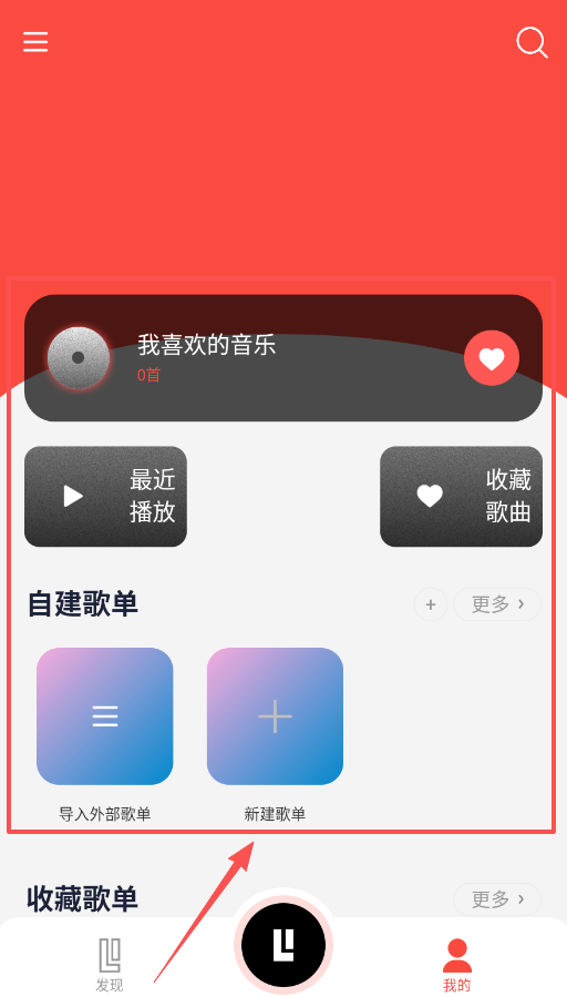 1、软件打开后,主页面会呈现“我喜欢的音乐”“最近播放”“收藏歌曲”等核心功能模块,能有效避免喜欢的歌曲丢失。