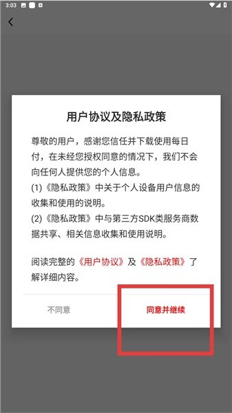 1、进入软件后,会弹出服务协议,需仔细阅读软件提供的建议,然后点击同意并继续后续操作。