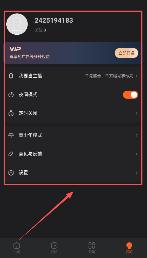 3、在“我听”页面或者播放界面,你可以使用“夜间模式”和“定时关闭”等功能,让使用更安心。