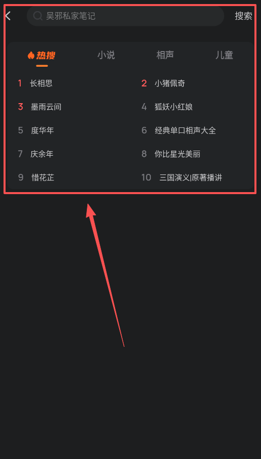 2、如果想快速找热门内容,可以留意顶部的“热搜”榜单,这里会列出像“长相思”“小猪佩奇”等热门作品。