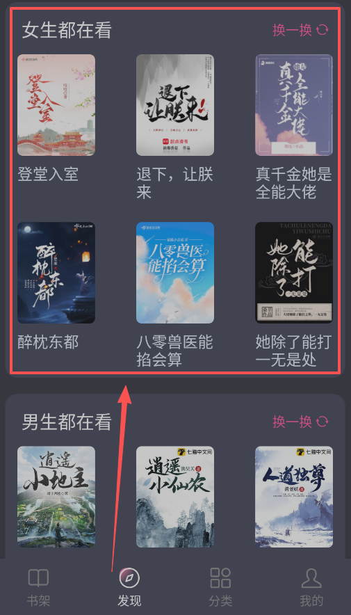 1、处于新手阶段时,只需熟悉底部四个主要导航按钮的基础功能即可:通过“发现”板块查找热门内容,借助“分类”功能筛选不同类型的资源,利用“书架”来收藏喜欢的内容,点击“我的”查看相关数据信息。