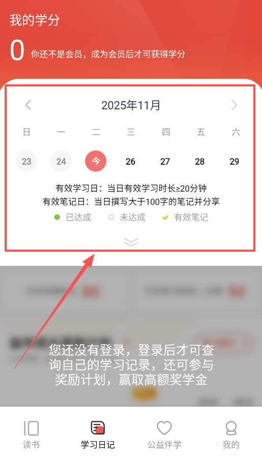 2、听书得学分:完成每日听书任务、签到均可获得学分
