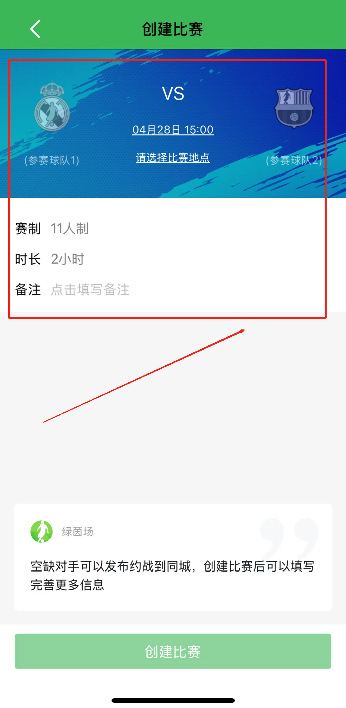 3、填写球队、时间及场地信息,一键发起挑战邀请其他队伍。