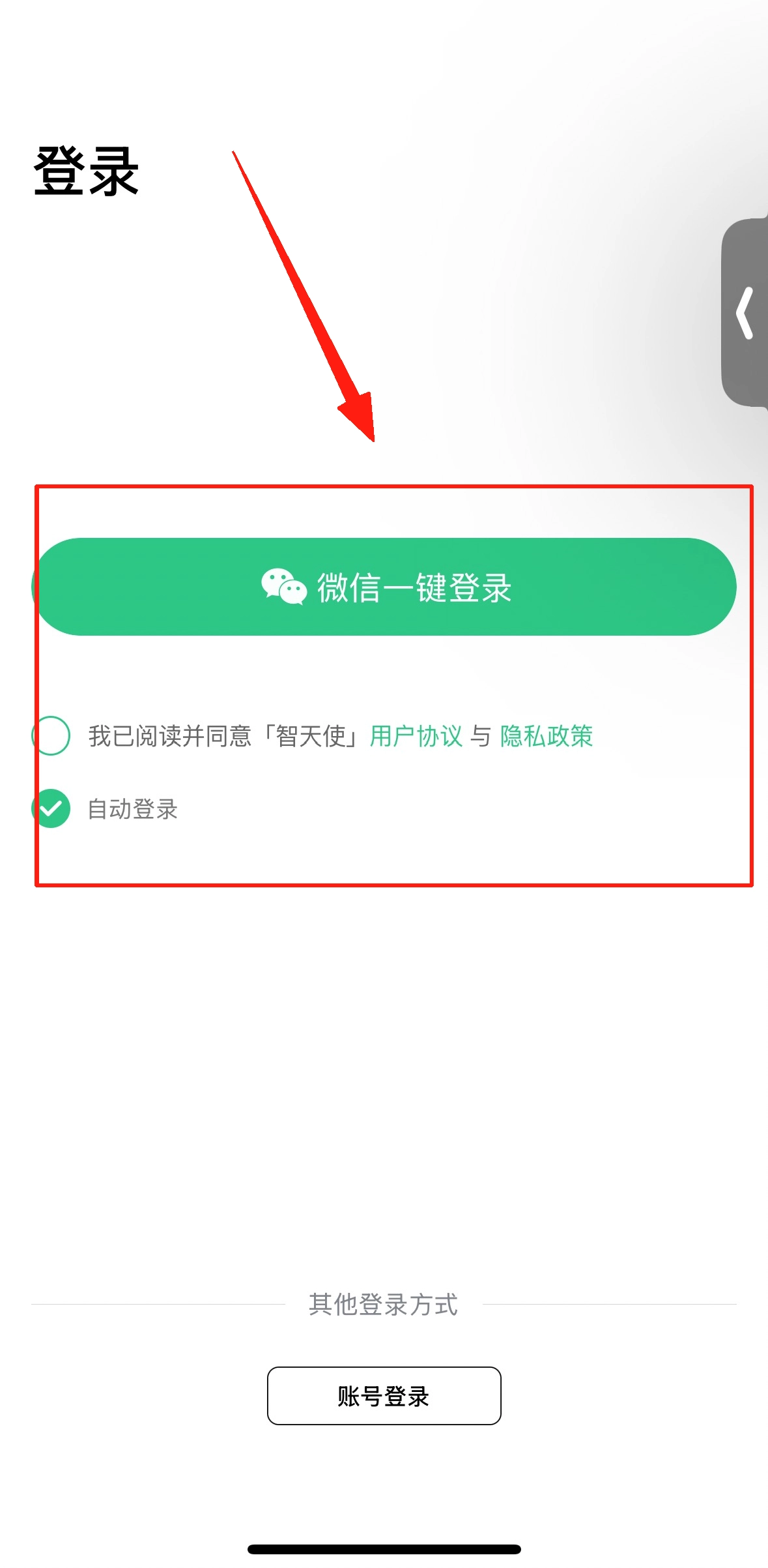 1、打开智天使后先注册账号呢。