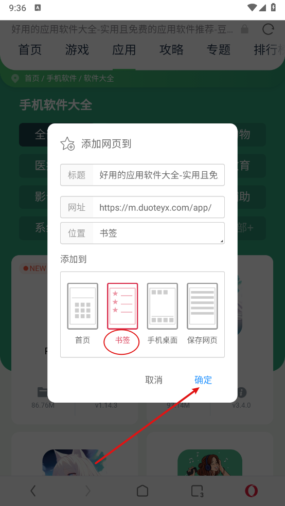 欧朋浏览器怎么添加书签