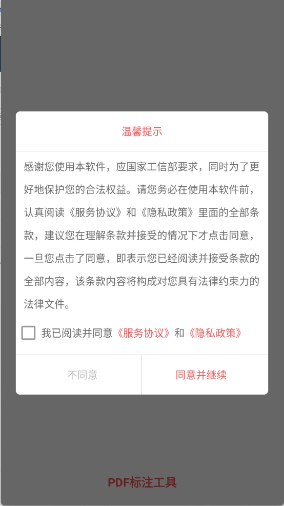 1、首先在本站的PDF标注工具中,查看并同意隐私政策和用户协议。