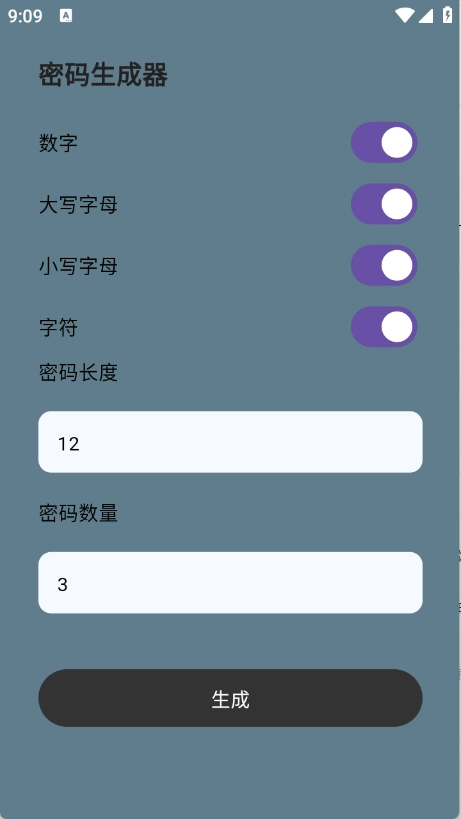 4、输入密码长度、密码数值等,点击“生成”即可。