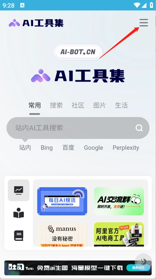 1、首先在本站AI工具集,点击右上角的三个横杠。