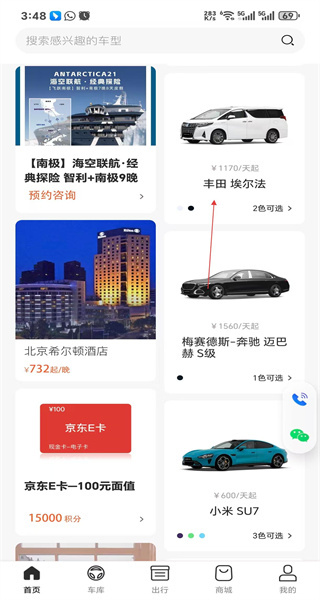 4、回到首页后点击车库按钮,浏览各类车型和套餐信息,挑选感兴趣的车型查看其详细内容。