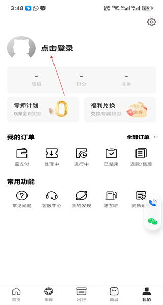 打开软件后,首页设有保障服务与车型相关的板块,点击底部的“我的”按钮,即可进入对应的个人操作页面。