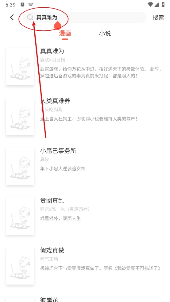 1、打开软件,进入搜索框搜索喜欢的漫画资源。