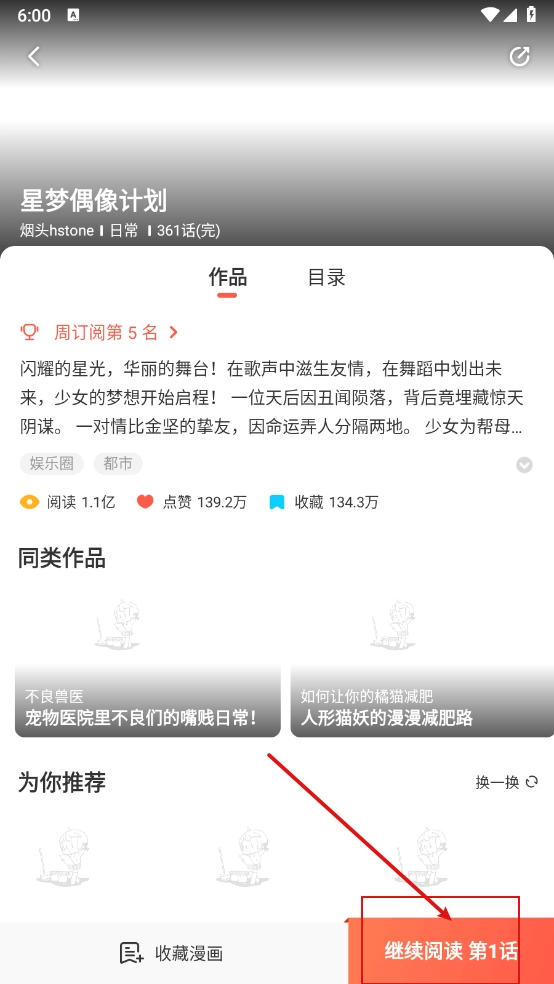 2、在详情页点击"继续阅读"。