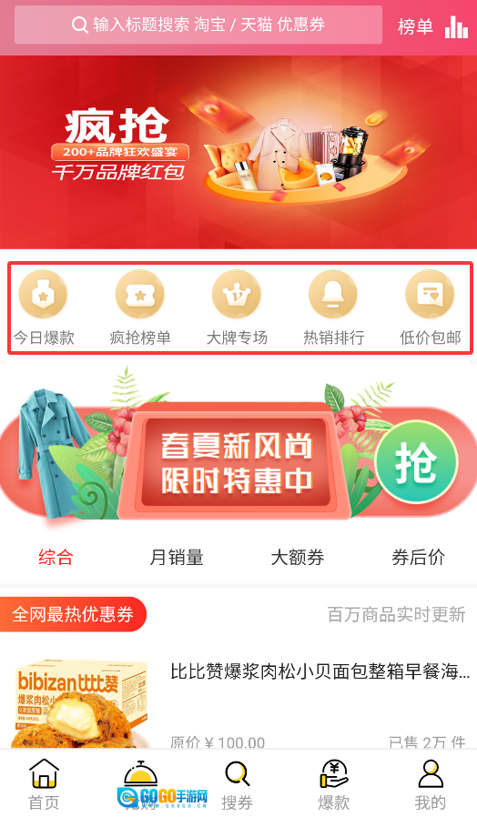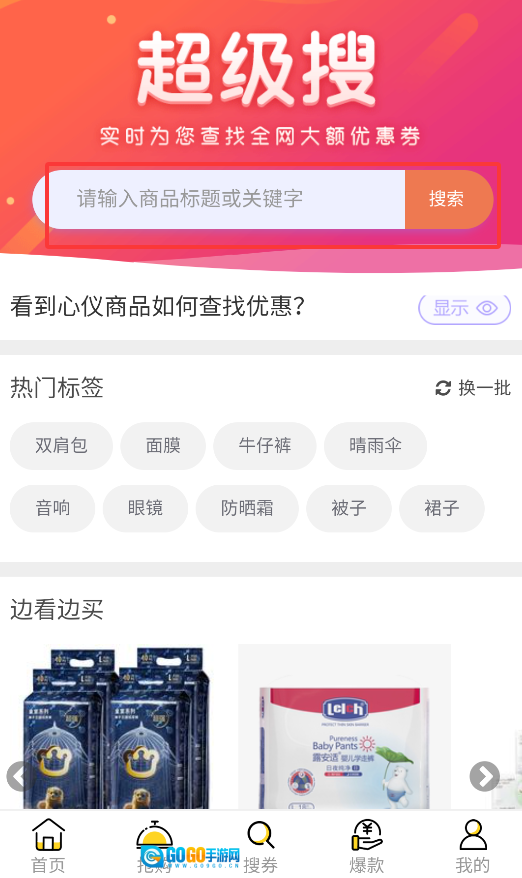 3、通过"搜券"功能输入商品关键词,系统会智能匹配可用优惠券及折扣商品信息。