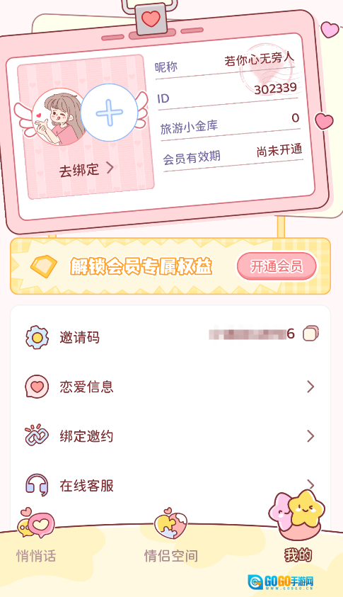 1、启动后,进入情侣空间,点击"绑定伴侣"并输入对方的账号信息,双方确认后即可建立专属连接。
