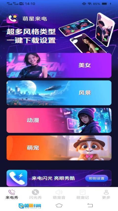 萌星来电这个来电秀挺有意思的,各种搞笑、酷炫的来电视频随便换。手机闪光灯还能跟着节奏闪,来电话时特别拉风。闲着没事还能玩玩里面的电子宠物,逗着玩挺解压。如果想给手机来电换个花样的,下这个玩玩挺合适。操作简单,效果也挺炫,快去试试吧。