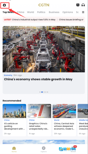 1、打开CGTN应用后,点击首页左上角的菜单图标,展开侧边栏的功能选项列表。