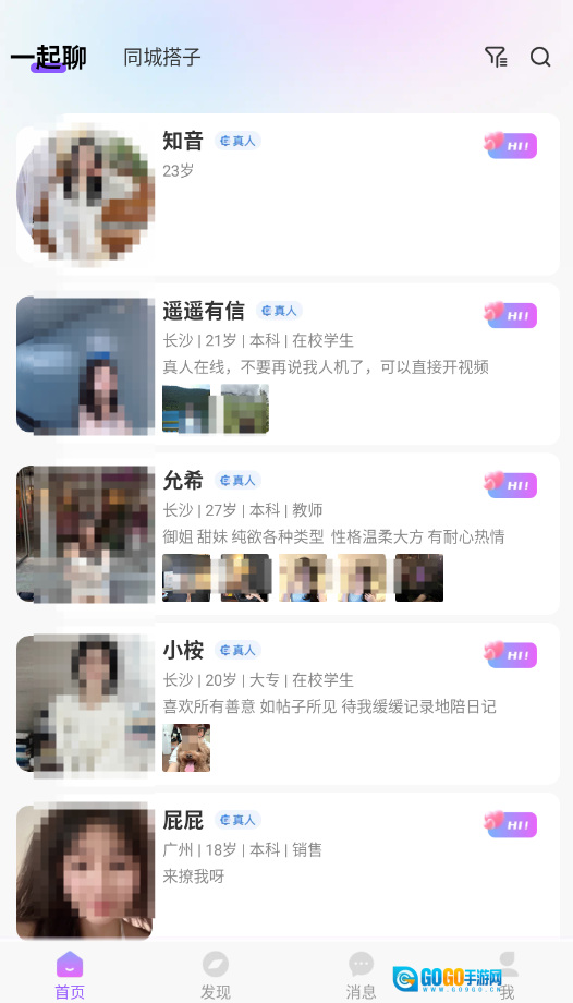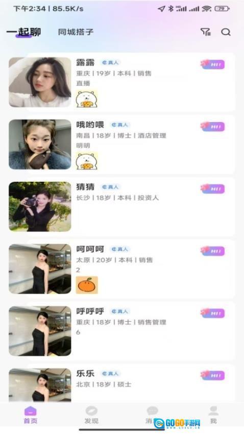 1、打开应用后,进入“一起聊”页面查看系统推荐的用户,挑选自己感兴趣的人作为聊天对象。