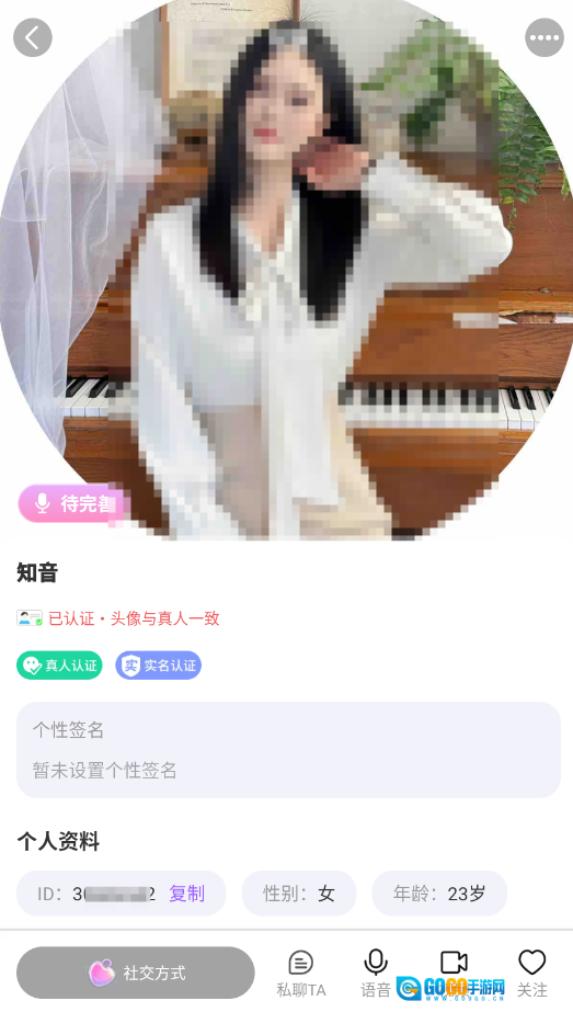 2、点击对方头像进入其个人主页后,可选择私聊功能发起沟通,该功能支持文字、语音及视频通话等多种交流模式。