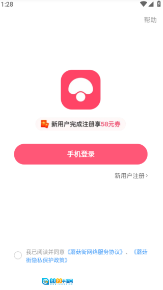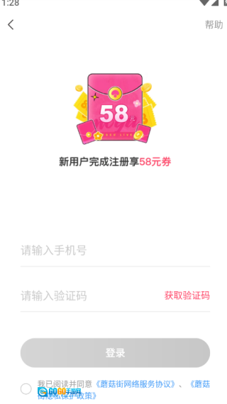 4、新用户可以点击注册,输入手机号码,接收验证码,勾选下方的协议即可成功登录。