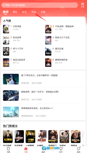 进入阅友小说后,在分类导航栏里找到“完本”专区的入口并点击它。