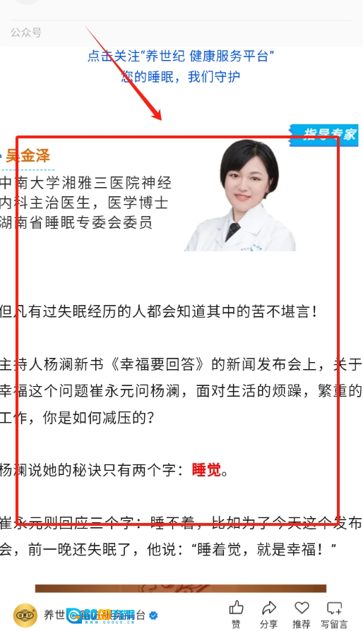3、点击感兴趣的文章,即可查看详细内容,轻松学习睡眠相关知识。