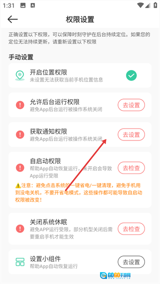 2、进入【权限设置】页面,点击【获取通知权限】。