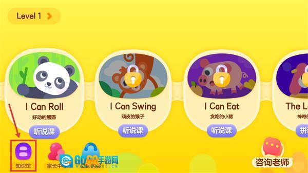 1、进入软件Level-1界面后,找到【知识馆】按钮。