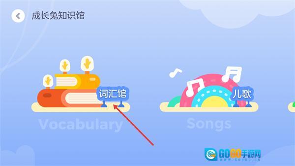 2、点击【知识馆】进入【成长兔知识馆】页面后,会看到【词汇馆】【儿歌】等功能选项,大家可以根据自己的需求选择对应的学习板块。