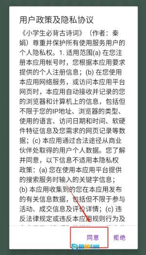 1、点击同意按钮,即可顺利进入应用主界面,开启您的古诗词学习之旅。