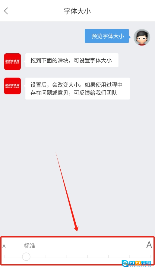 3、界面下方会出现可拖动的调节滑块,按住白色圆点左右移动,就能实时调整软件内文字的显示大小。