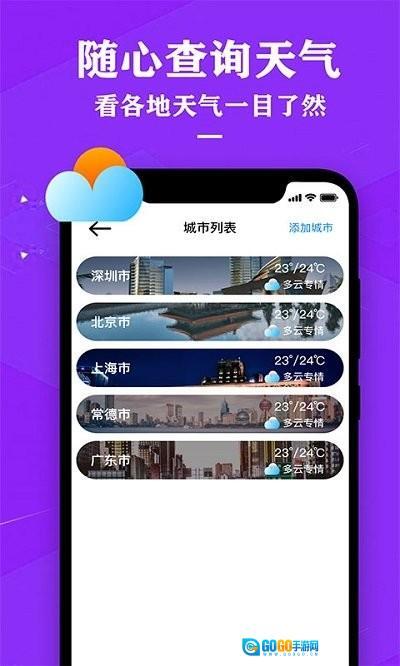 2、支持手动切换城市,无论何时何地都能查询其他地区的天气信息,还可借助便捷的分享功能,及时向亲友提醒不同城市的天气变化状况。