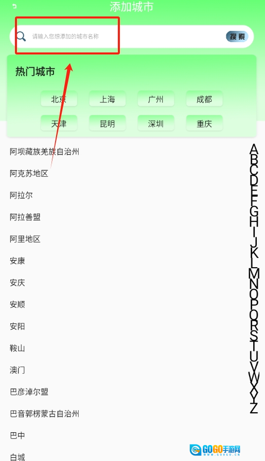2、在搜索框中输入城市名称,输入完成后点击确定,该城市的天气信息就会添加到你的列表中。