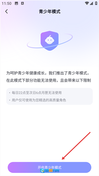4、点击底部的【开启青少年模式】按钮,就能开启该模式。