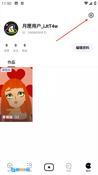 2、进入【我的】页面,点击右上角的设置图标。