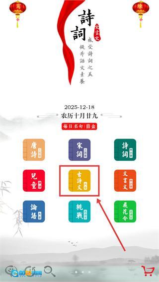 1、打开主界面后,找到标有【古诗文-大全】的选项并点击进入。