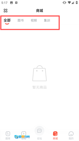 进入商城后,可通过顶部的【全部】【图书】【视频】【集训】分类来查找需要的商品。