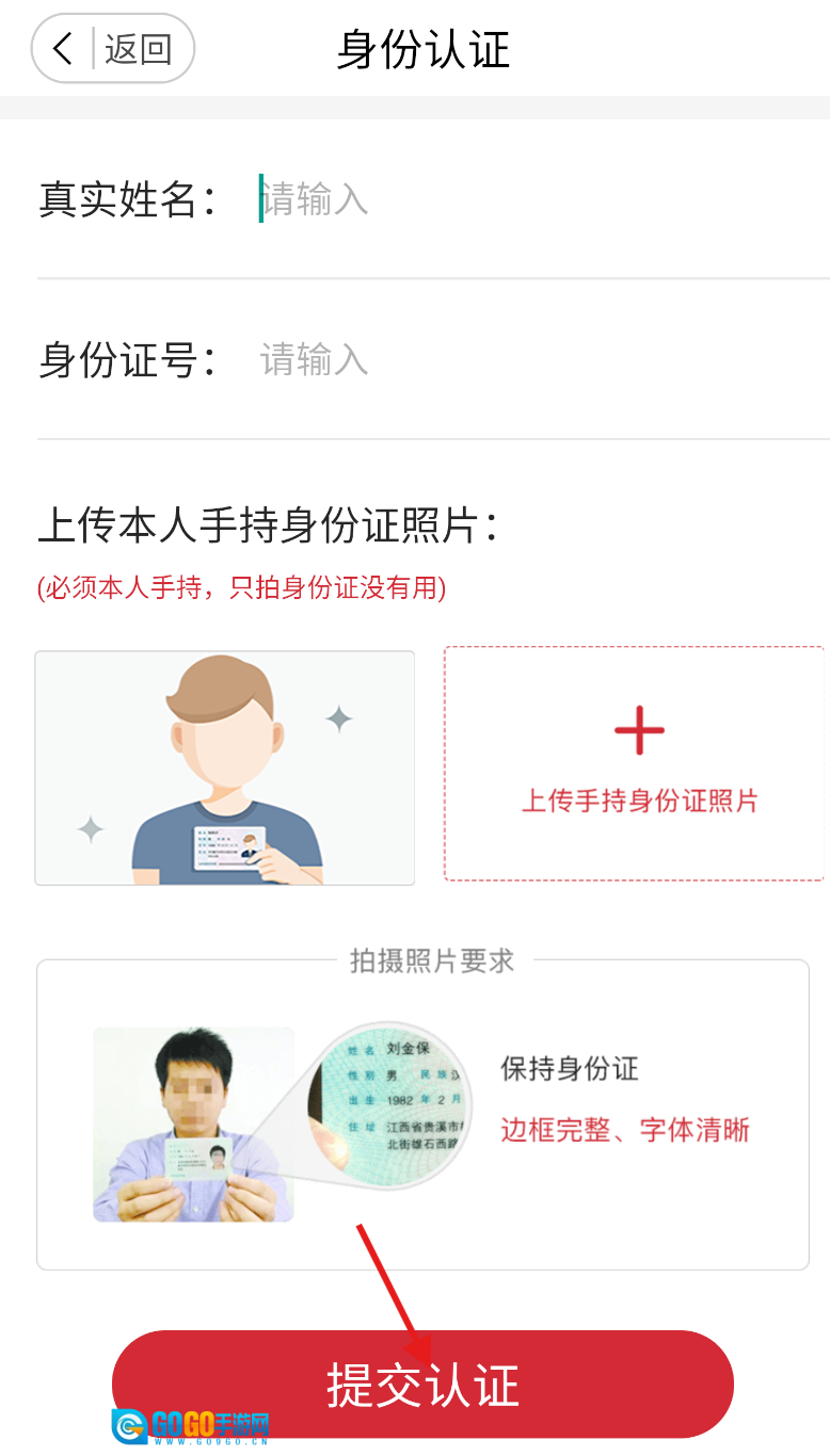 4、在认证页面如实填写身份信息,仔细核对无误后,点击提交认证完成实名认证。