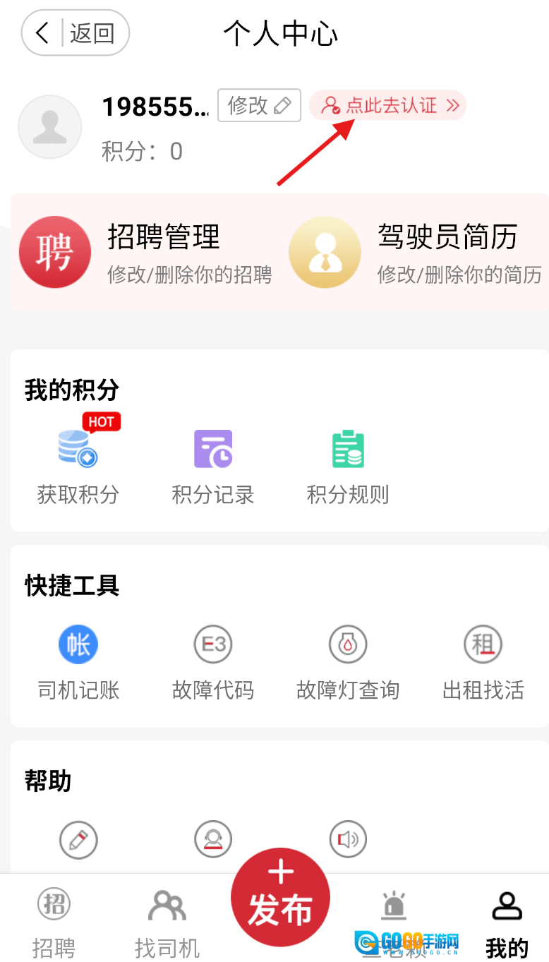 3、进入个人中心后,在昵称旁能看到 “点此去认证” 标识,点击该标识进入认证流程。