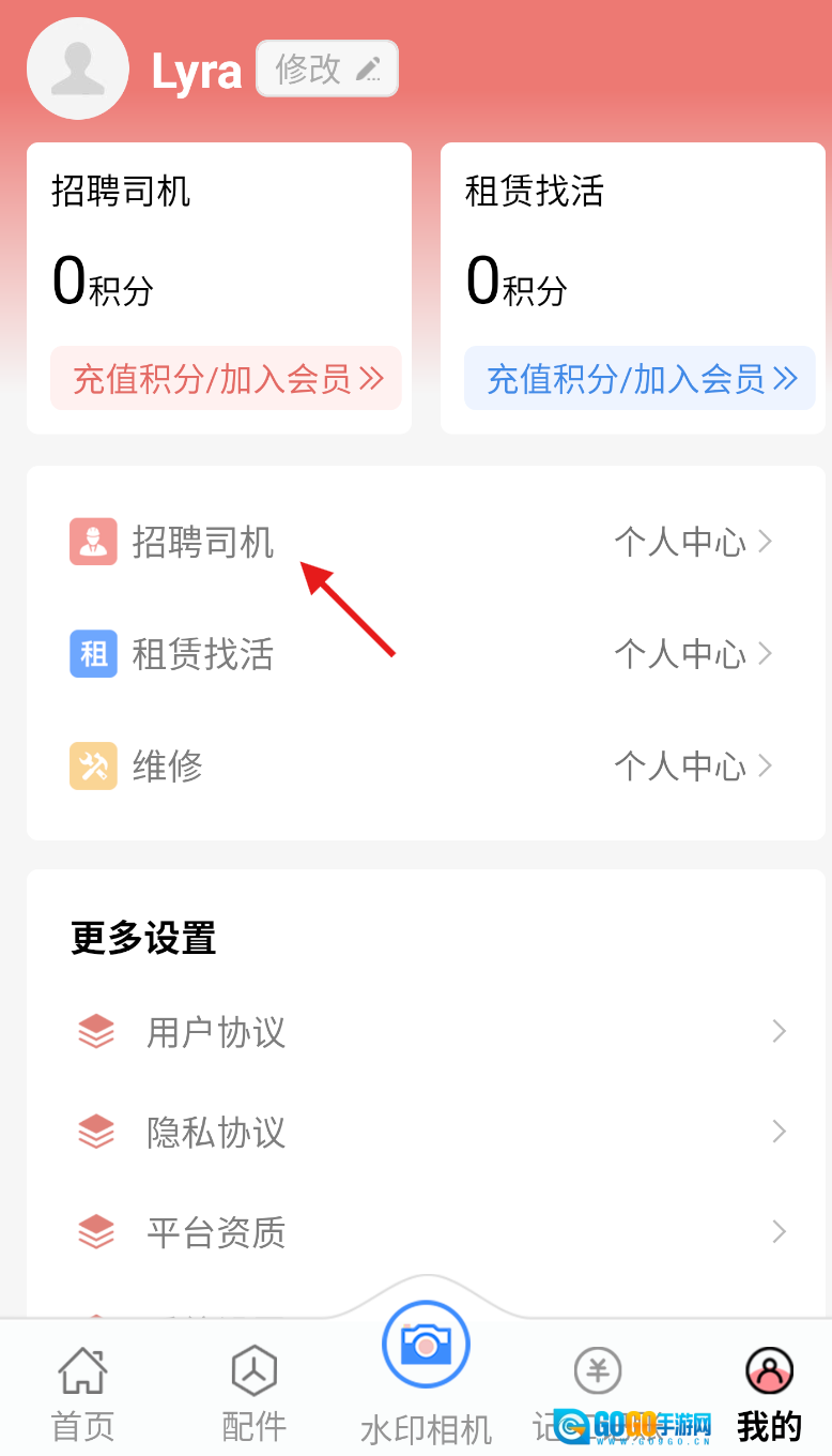 2、在 “我的” 页面中,找到并点击 “招聘司机个人中心”,进入相应操作界面。