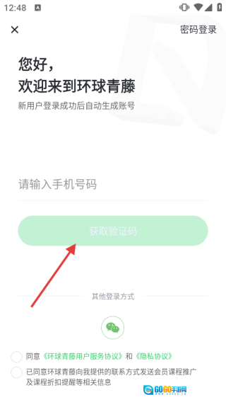 3、进入登录界面后,先输入手机号码,接着点击【获取验证码】按钮,以便开展后续的登录操作。