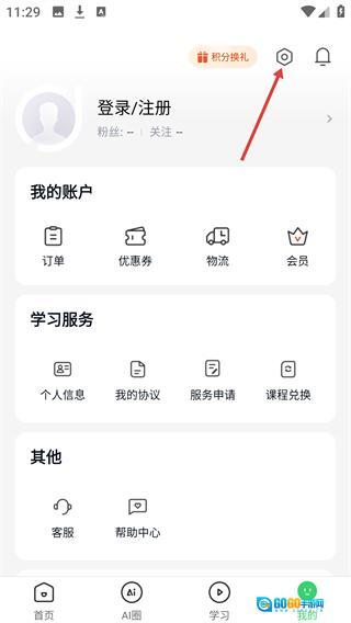 在个人中心页面,点击顶部的【登录/注册】按钮,即可跳转至登录界面。