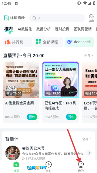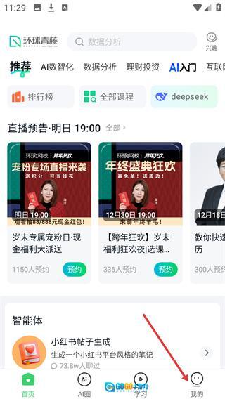 进入【环球青藤】后,能在界面上找到【我的】按钮。