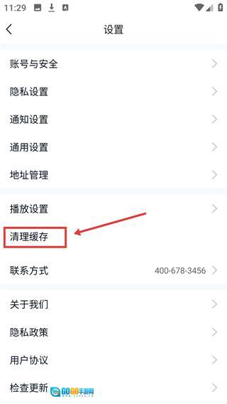 3、进入【设置】页面后,找到【清理缓存】选项,即可执行缓存清理的操作。