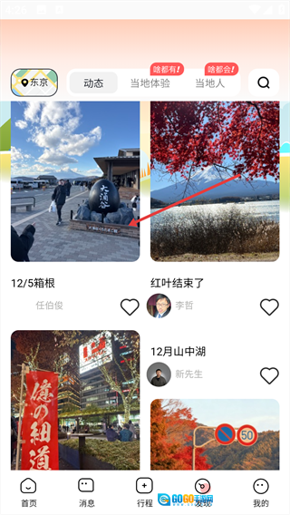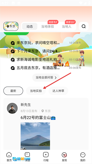 2、进入【发现】页面后,点击【当地实拍】标签,即可浏览当地的实拍动态内容。