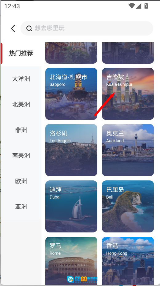 2、在城市选择列表里找到“马来西亚-吉隆坡”并点击,以此确认需要用车的具体城市位置。