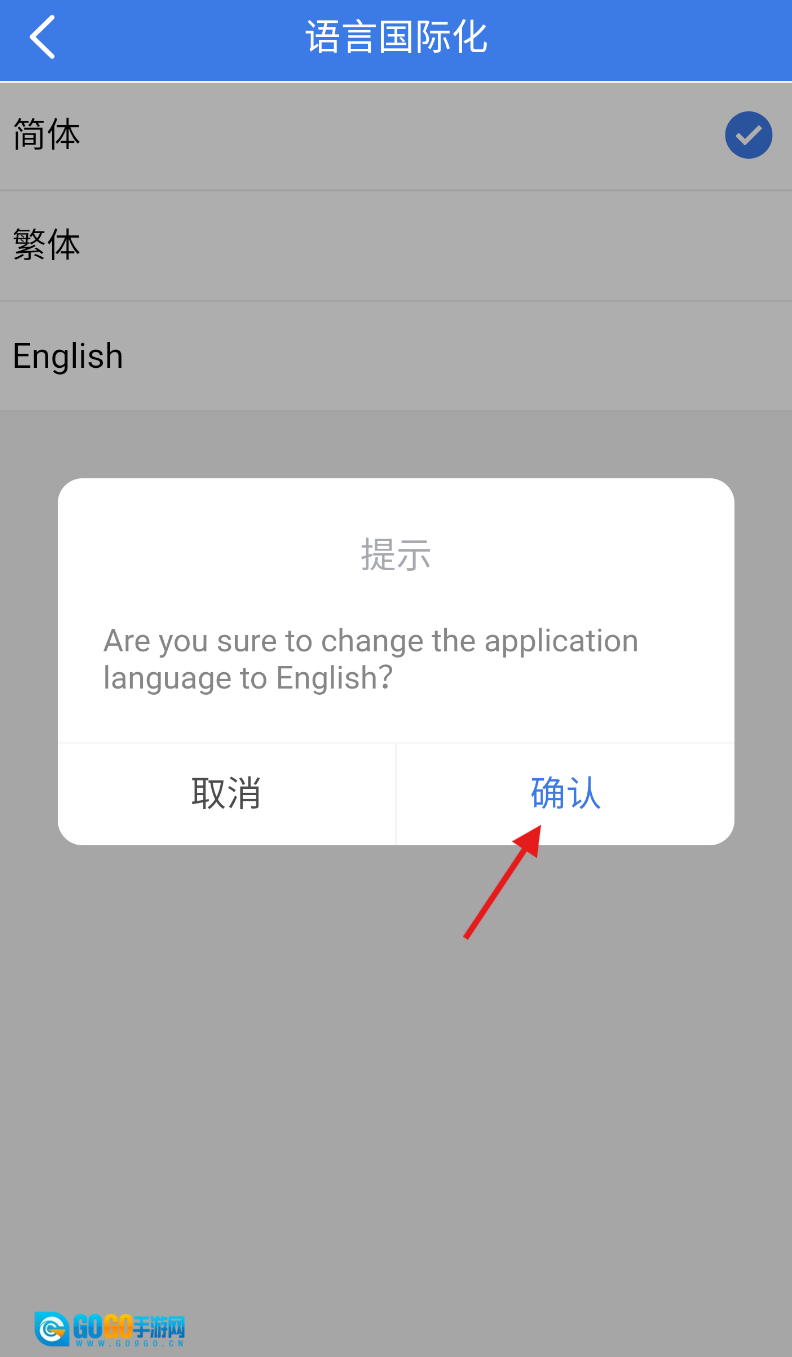 5、仔细阅读弹出的提示信息,确认内容准确无误后,点击确定按钮,这样就能完成软件语言到英文的切换操作。