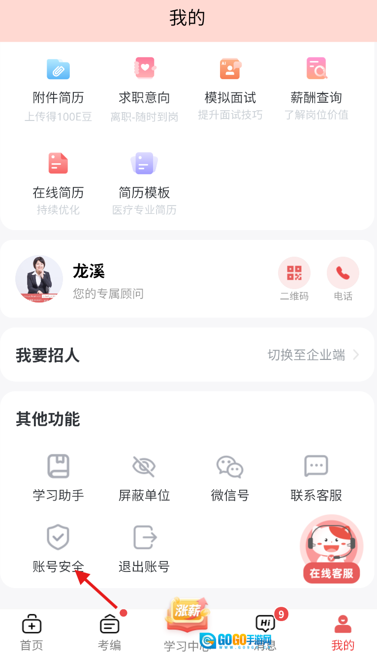 进入“我的”页面后,在界面中找到“账号安全”板块并轻点进入,即可进行相关设置。
