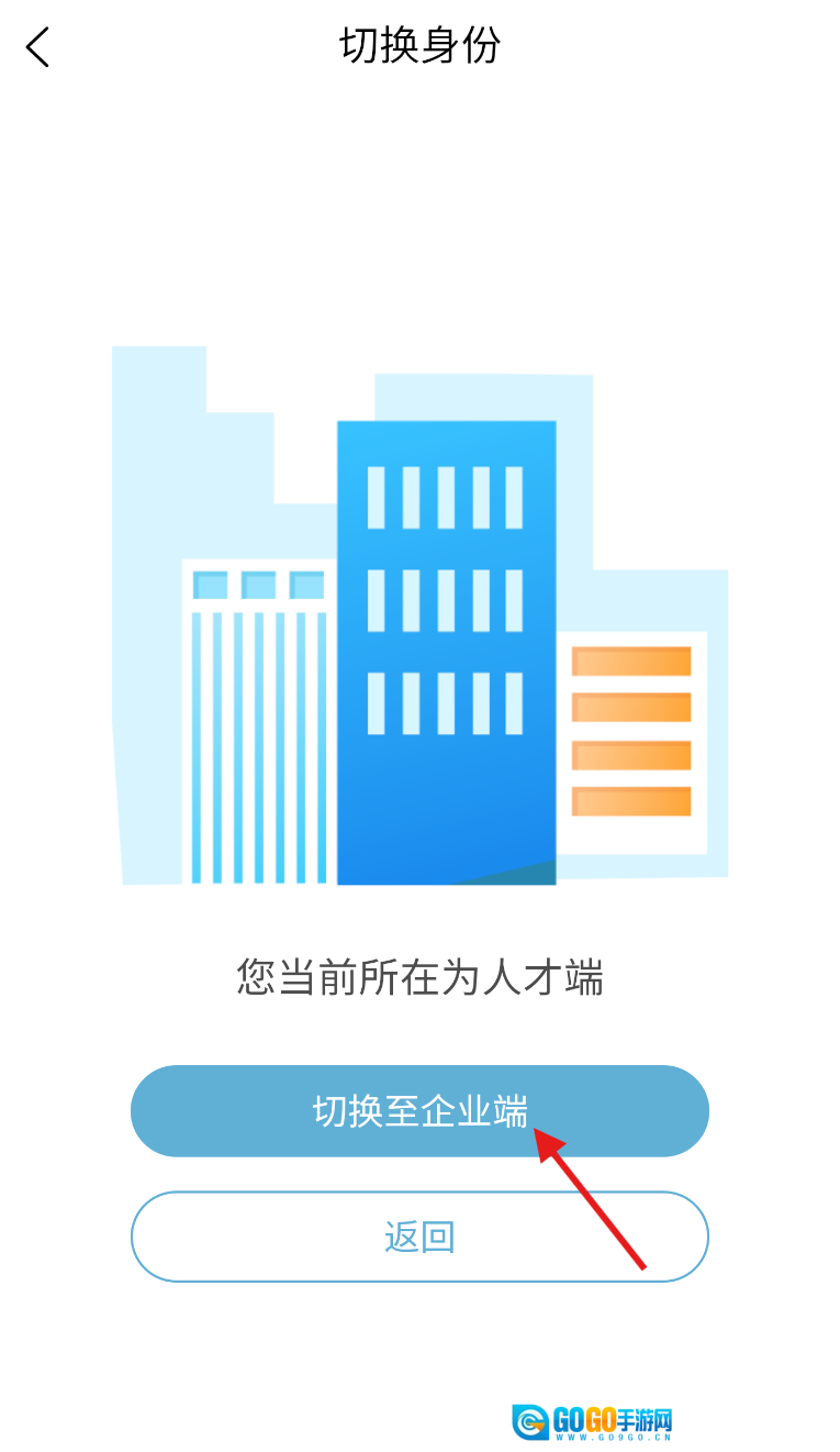 4、在角色选择界面,找到“切换至企业端”的选项并点击,这样就能完成切换到企业端的操作了。