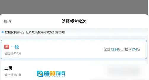 4、选择报考批次,进一步分析可报考的大学。